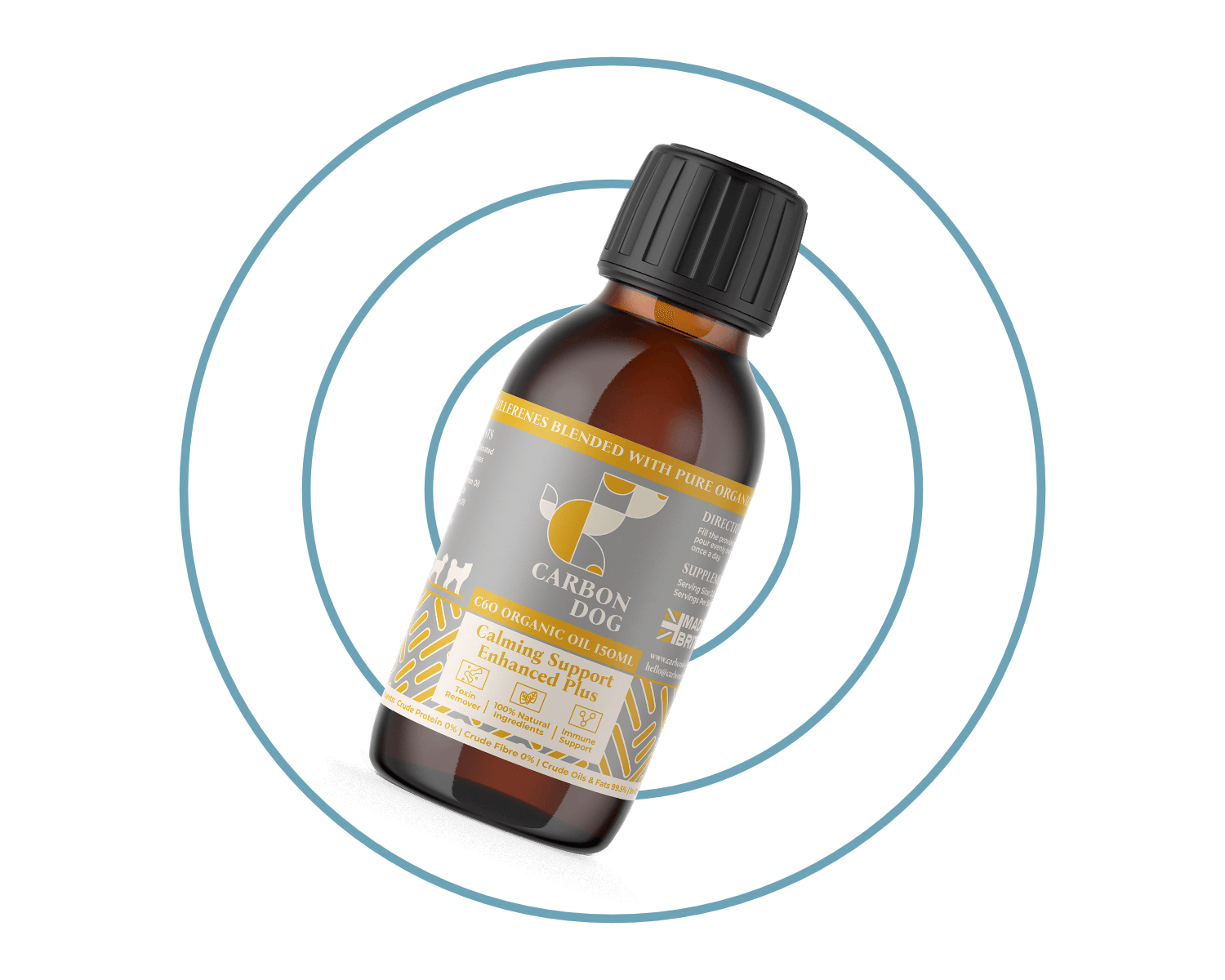 Our calming and anxiety enhanced plus organic antioxidant oil is a premium blend of pure Carbon and organic oils specifically designed to reduce anxiety and stress while supporting your dog’s daily health & wellbeing and promote long-term longevity and vitality.