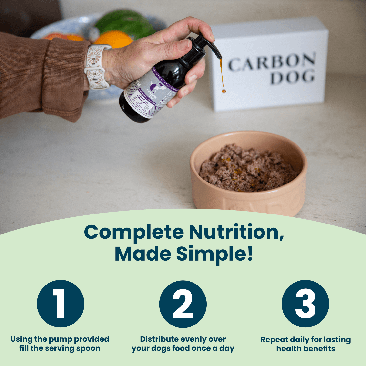 Simply fill the spoon and distribute over your dog’s food once a day.